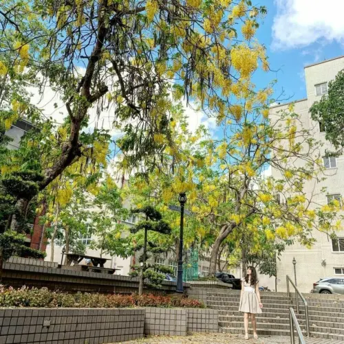 台中IG打卡景點|興大路阿勃勒花大道|中興大學黃金雨隧道|拍照點pose教學