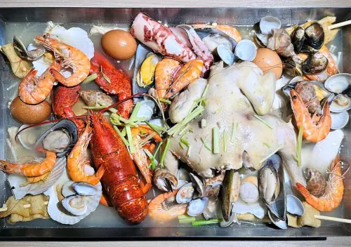 中永和美食。朋月栻-부산 韓雞龍蝦一隻雞 韓國超夯龍蝦一隻雞火鍋 龍蝦、全雞、海鮮滿到溢出來