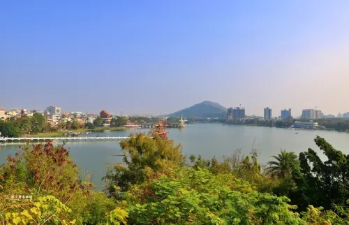 蓮池潭左營龜山步道‧蓮池潭秘境步步,鬧區中的寧靜棧道,遠眺半屏山蓮池湖畔 - 敦 小 蓮の食旅錄