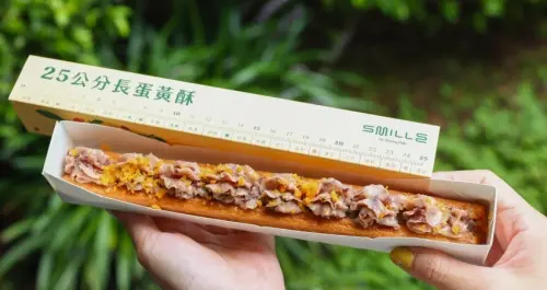 25公分長蛋黃酥!水果千層酥Smille微笑蜜樂「柚子蛋黃蜜樂酥」中秋限定開吃,長型蛋黃酥千層酥拍IG。