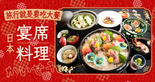 在日本旅途中若想吃大餐,宴席料理就是最佳選擇,生魚片、壽司、鍋物、炸天婦羅、烤物、甜點等應有盡有。出發前先預約,來趟頂級味蕾饗宴吧!