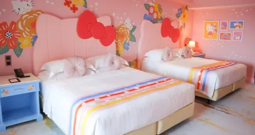 Kitty控最低6折入住!高雄漢來「三麗鷗主題房」打卡點全攻略,超萌「Hello Kitty房卡、夾腳拖」備品通通帶回家。