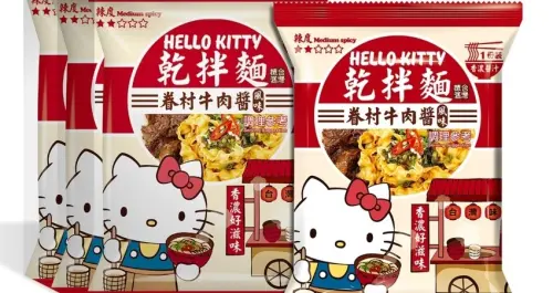 Kitty也出拌麵了!復古風「Hello Kitty乾拌麵」3種口味強勢開賣,超台味「牛肉刀削麵、三杯雞麵」Kitty控先吃起來。