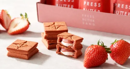 草莓控、抹茶控都暴走!超夯日本甜點Press Butter Sand快閃中山站,特濃「福岡草莓、宇治抹茶夾心餅」台灣也吃的到了。